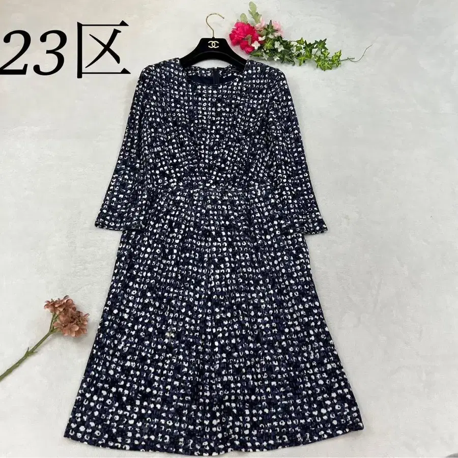 K71 M 23KU 올 패턴 무릎 기장 원피스 네이비 여성용