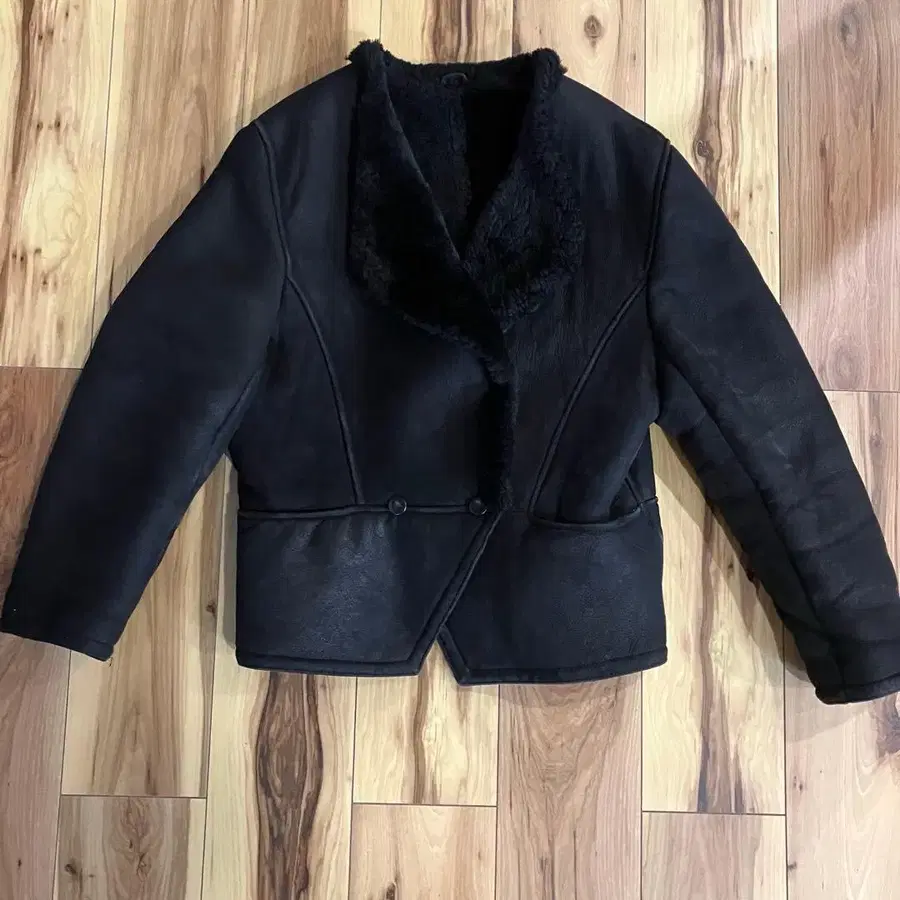 Aquascutum 무스탕 코트 노카라 더블 블랙