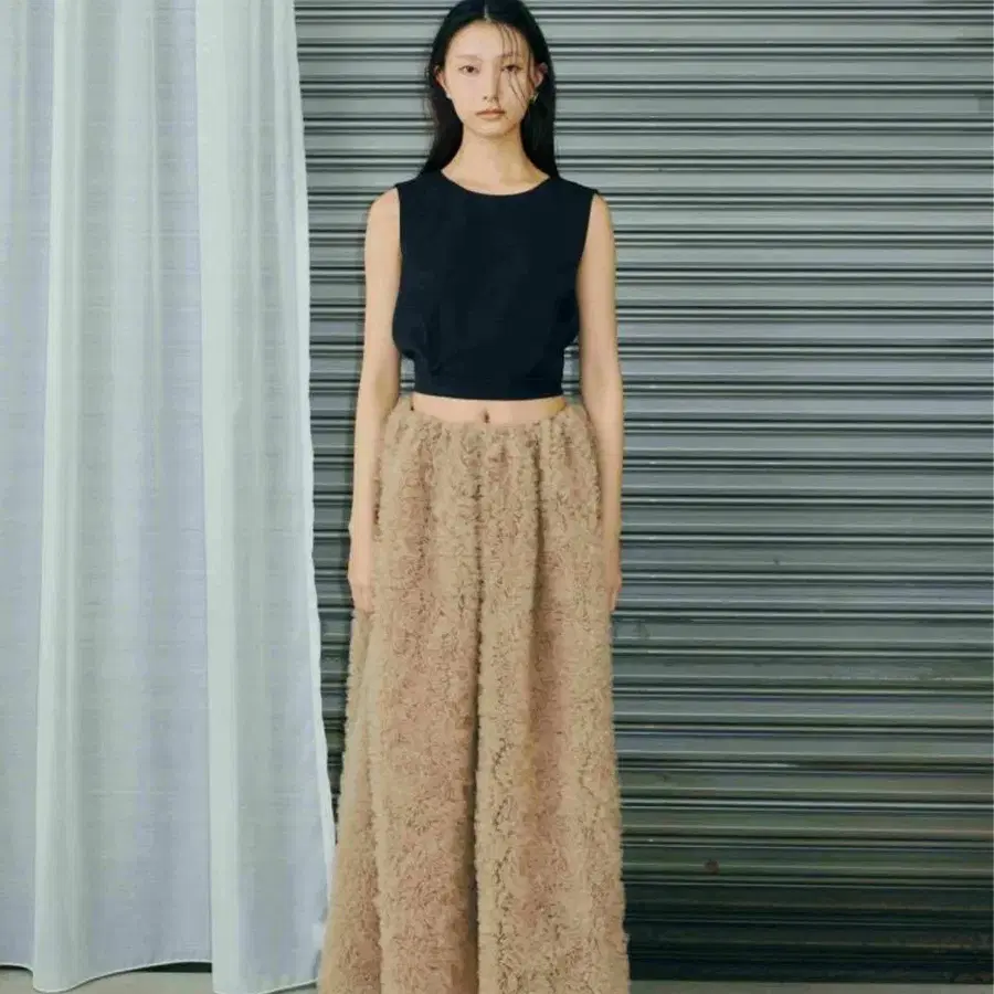 ANDRESD 슬리브리스 블랙 상의 베이지 롱 스커트
