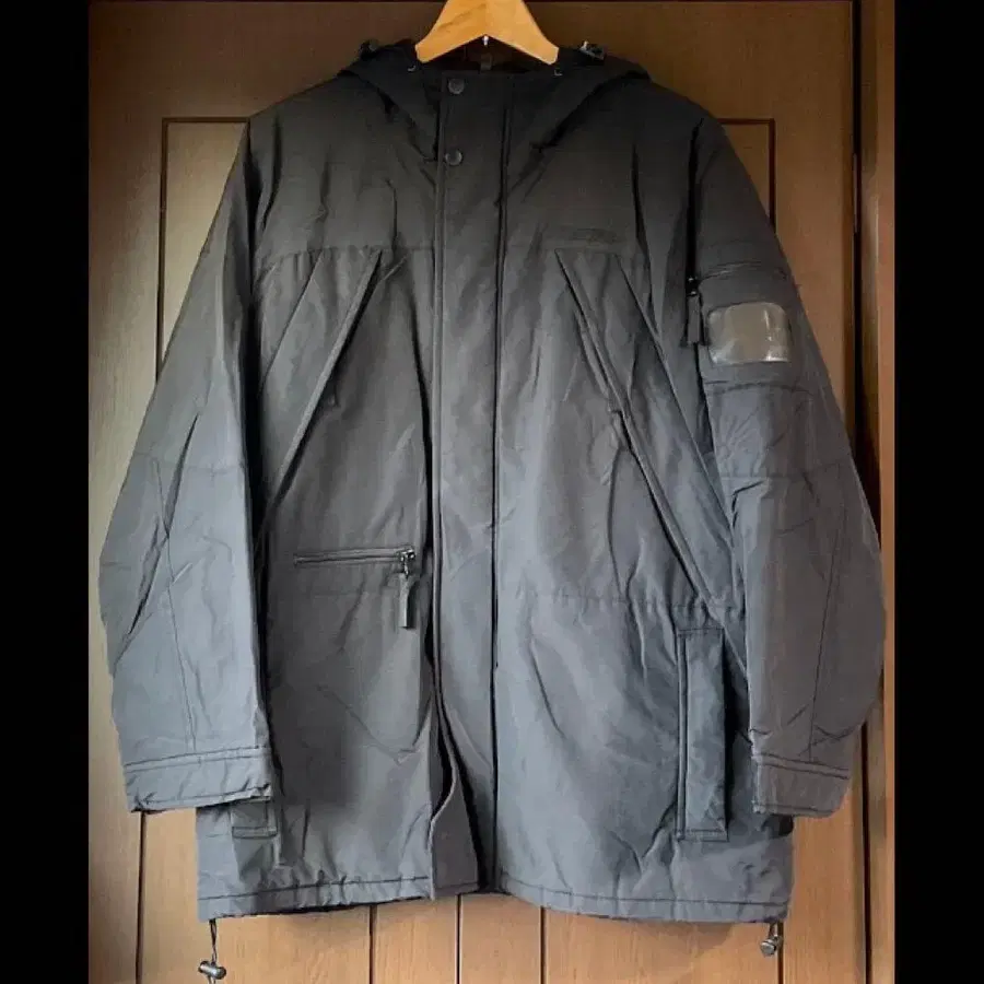 엑스걸 후드 부착 블랙 다운 자켓 코트