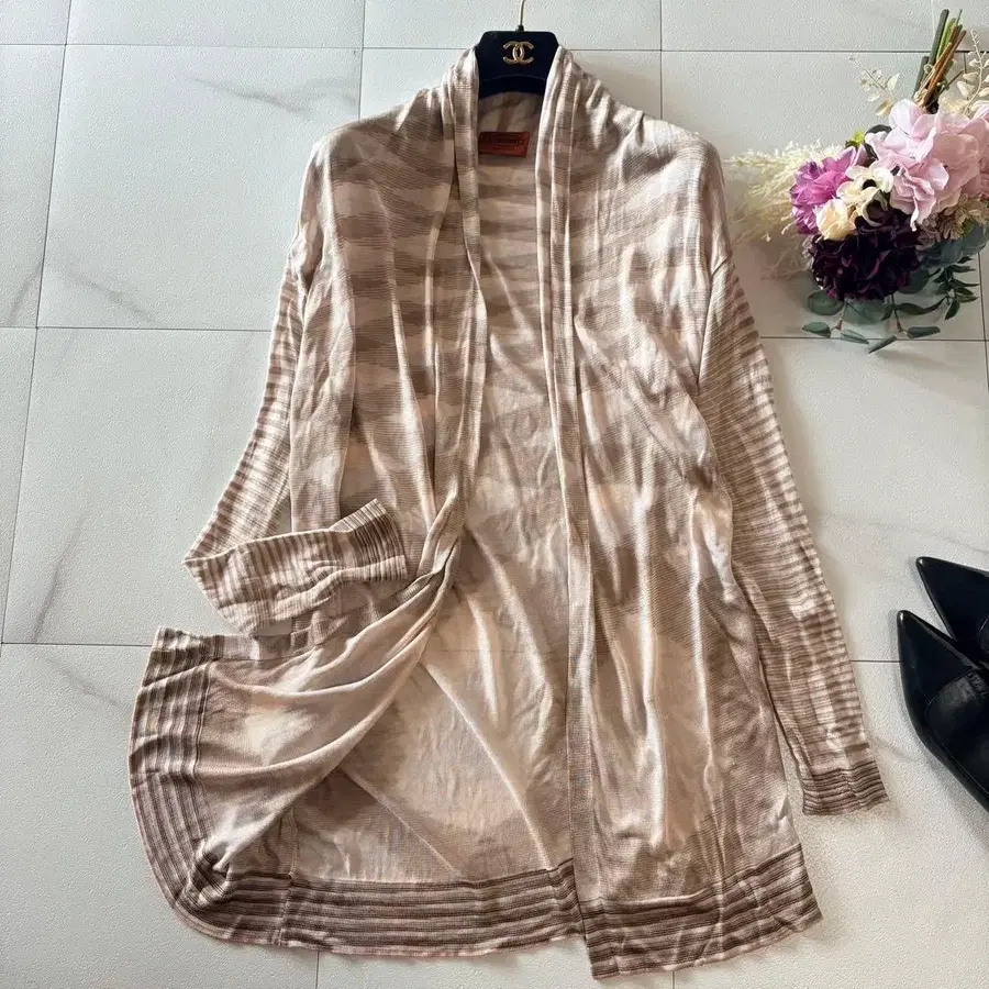 미쏘니 보더 롱 가디건 핑크 베이지 레이온 100