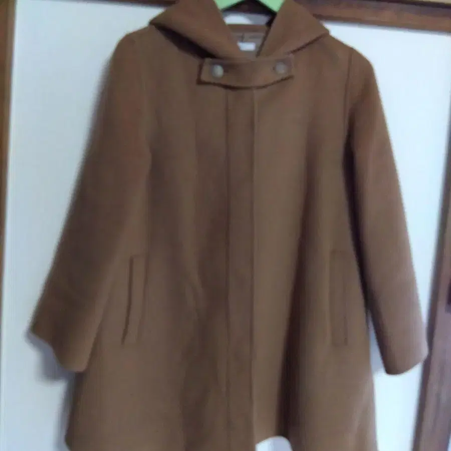이에나 판초 숏코트 울 캐시미어 혼방 후드 라이트 브라운