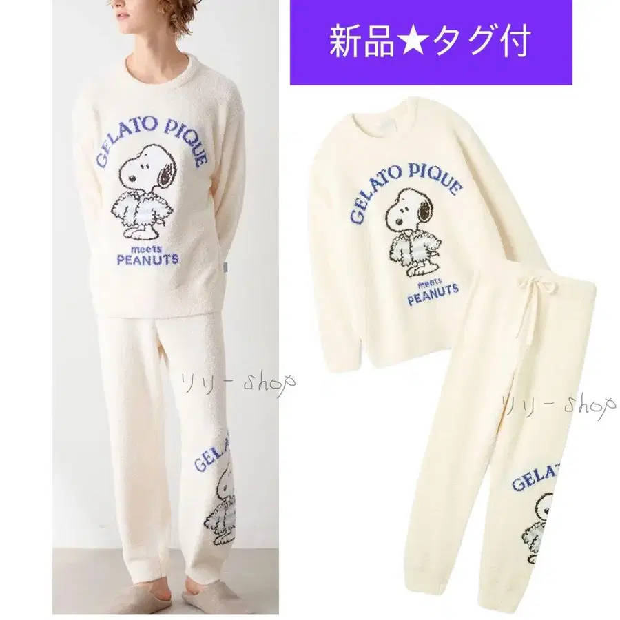 택 포함 새상품 스누피 자카드 풀오버 & 롱 팬츠