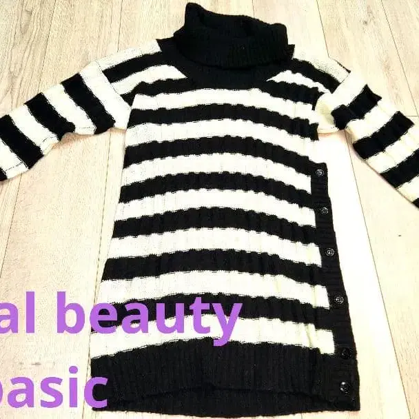 natural beauty basic 보더 니트 원피스 M 화이트 블랙