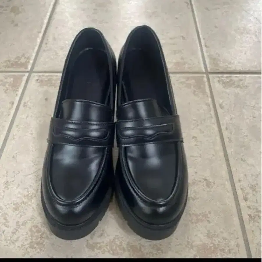 CHIBINBU 로퍼 블랙 로퍼 중간 힐 합성 피혁