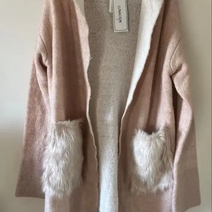 [ 미사용품 ] LUNACION 퍼 포켓 롱 가디건 사이즈 M