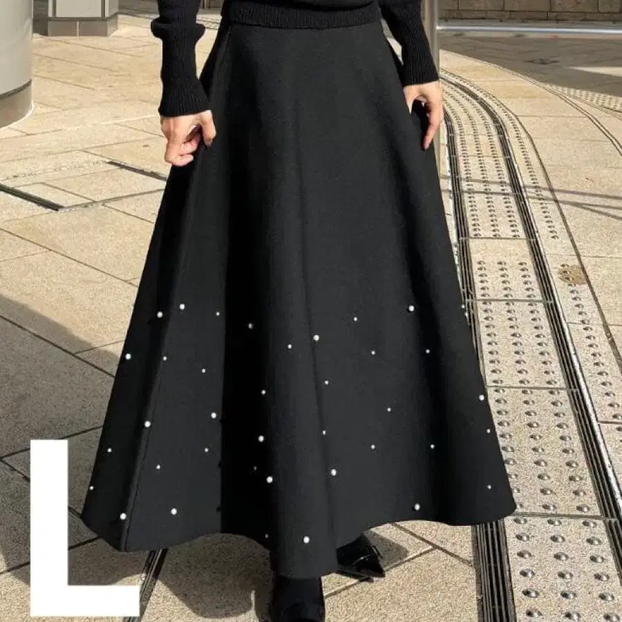 JENNE 랜덤 펄 니트 스커트 블랙 L 완판템