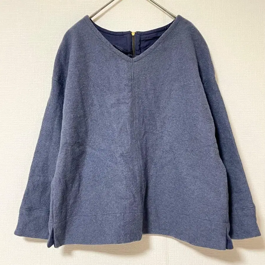 Acuta 7부 소매 니트 V넥 울 블렌드 일본제 뒷지퍼 F