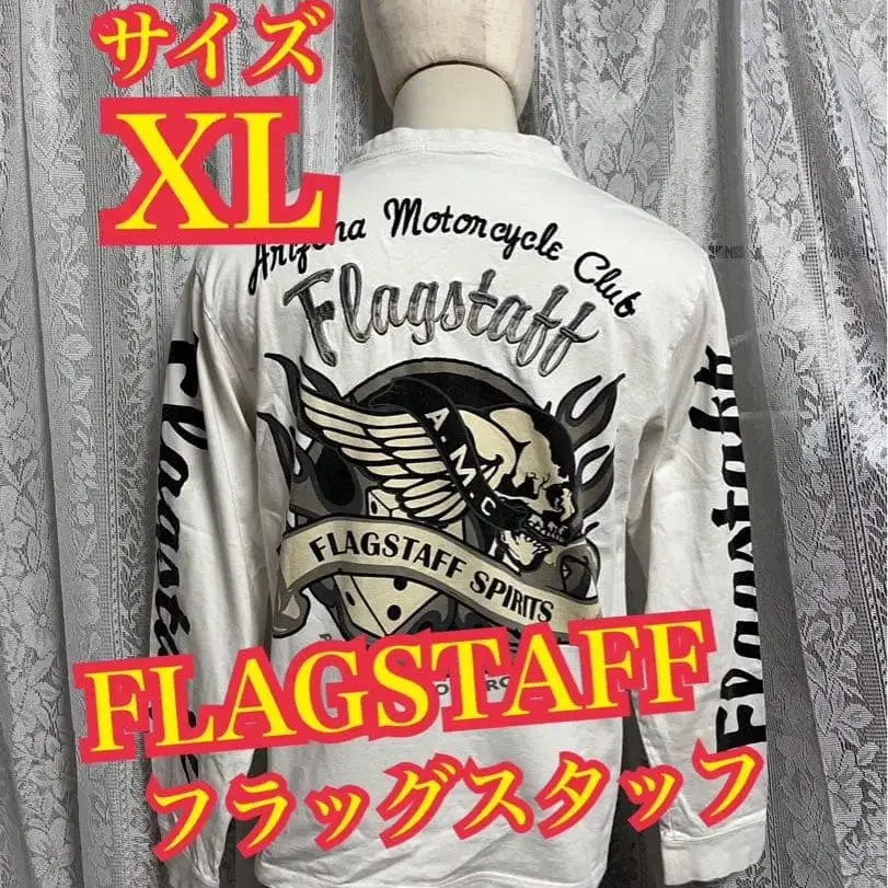 FLAGSTAFF 롱T 긴팔t셔츠 바이커 자수 로고 스컬 화이트 XL