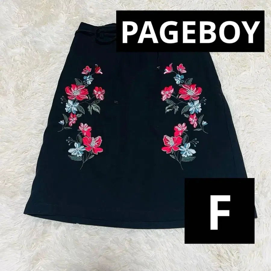 꽃무늬 자수 플레어 스커트 블랙 허리 리본 안감 부착 F 사이즈