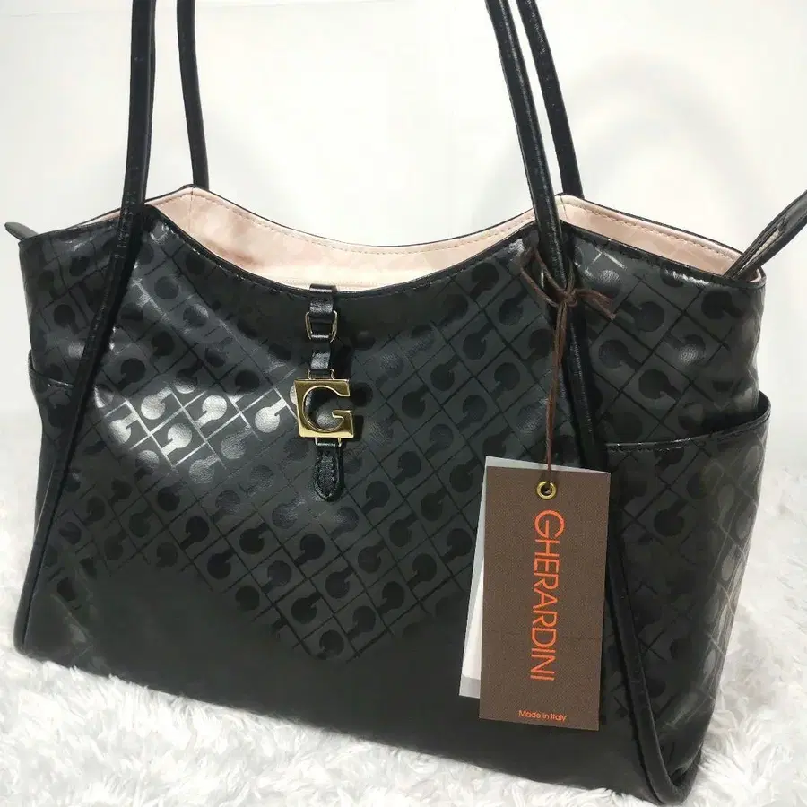 미사용급 게라르디니 소프티 핸드백 골드 금장 장식 블랙 경량