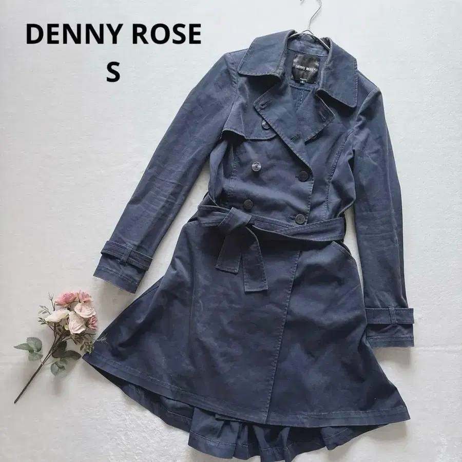 데니 로즈 트렌치코트 스프링 코트 플레어 S 네이비