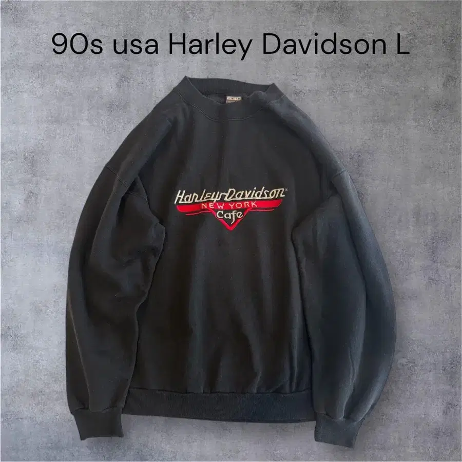 자동 번역되었어요. 원문보기90s usa製 자수 로고 Harley Davidson 맨투맨 네이비 L 코튼 50%/폴리에스테르 50%
