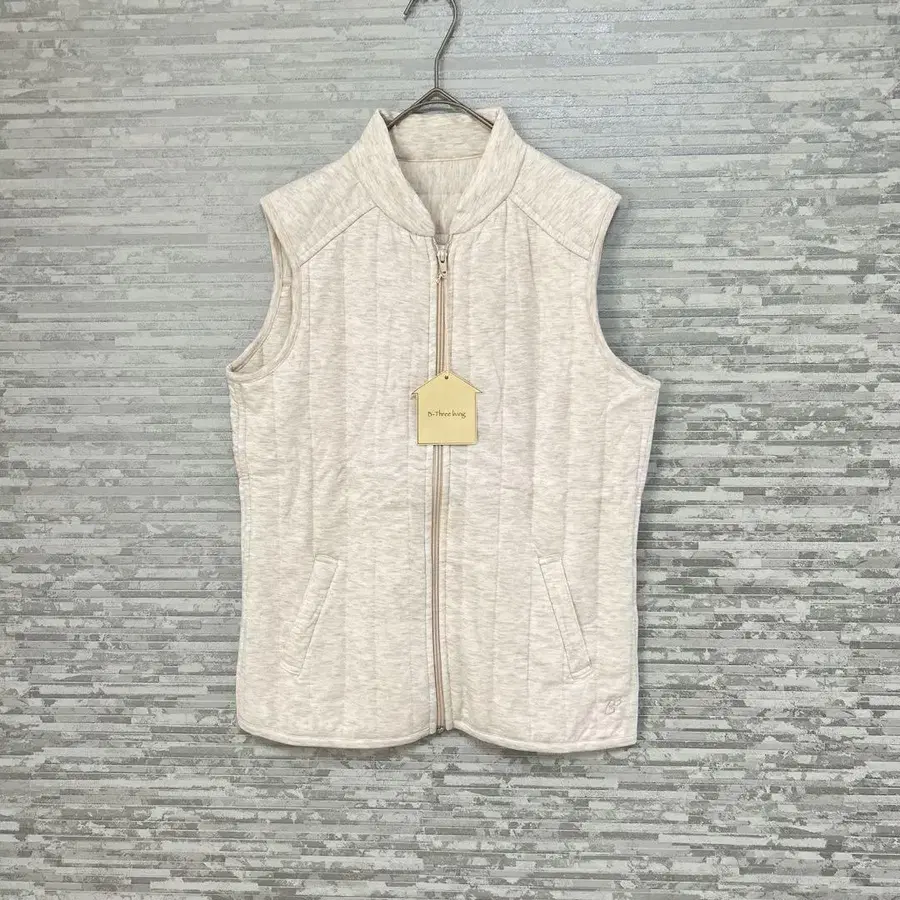 B-Three living의 부드러운 미색 충전솜 베스트로, 가볍고 움직이기 편하며 환절기에 유용합니다.