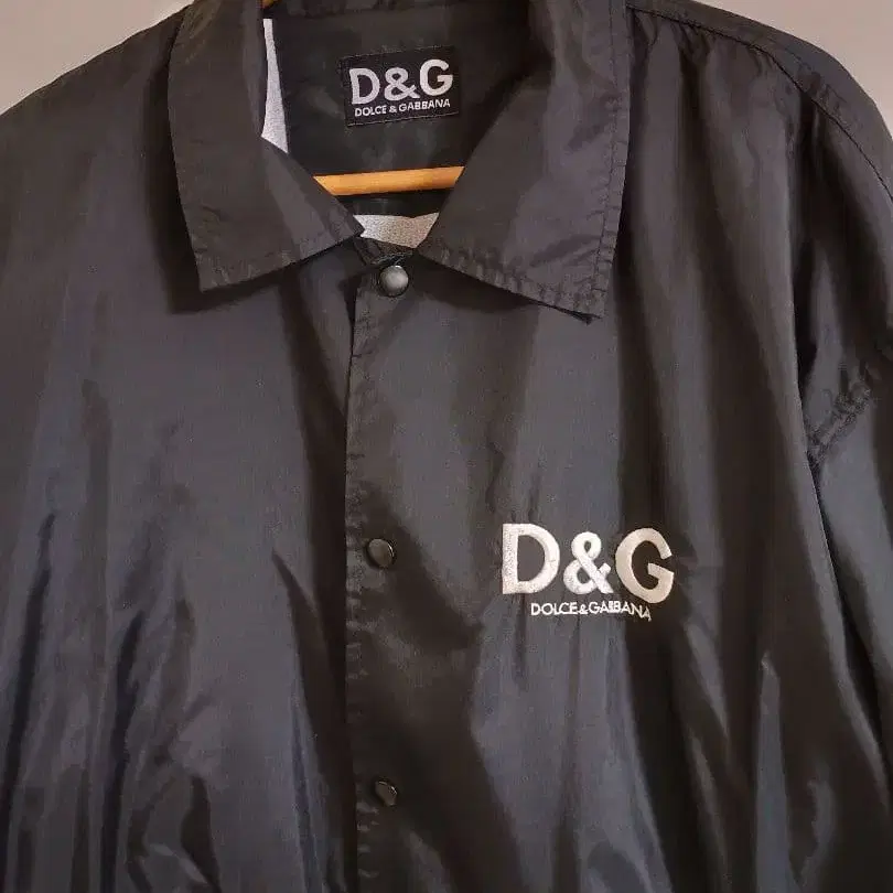 나일론 소재의 블랙 자켓, D&G 로고 포함. - 브랜드: D&G - 색상: 블랙 - 소재: 나일론 - 디자인: 단추식 - 로고: D&G (돌체앤가바나) 사이즈는 L에서 XL 정도입니다. 개인이 측정한 치수 (평평하게 놓음) 어깨 58cm, 소매 55cm 총장 72cm, 품 65cm 작게 접어서 발송합니다. 방문해 주셔서 감사합니다.