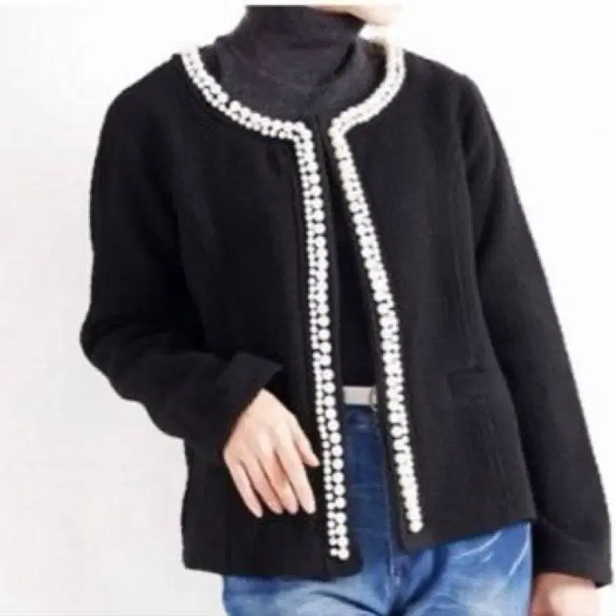 진주를 럭셔리하게 장식한 노카라 자켓입니다.