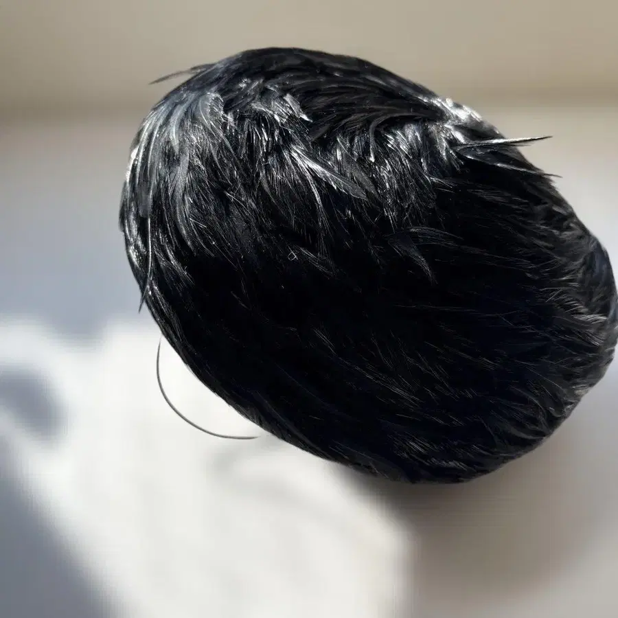 깃털 소재 블랙 라운드형 모자 트위스트 디자인