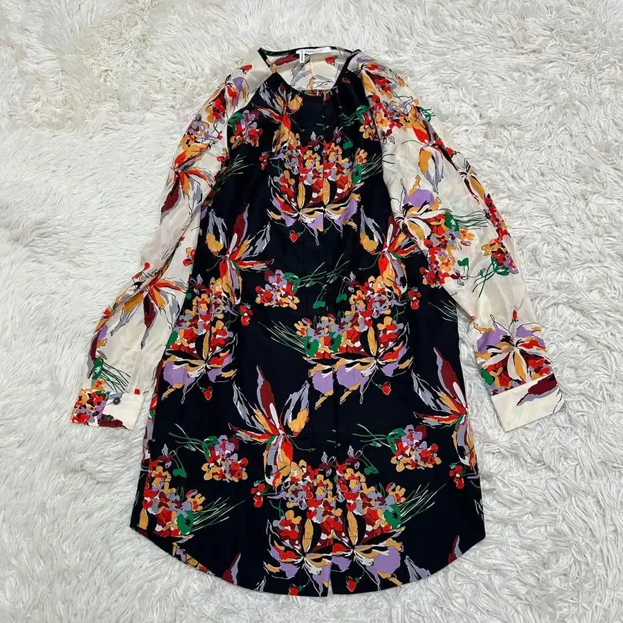 실크 플라워 올 패턴 셔츠 원피스