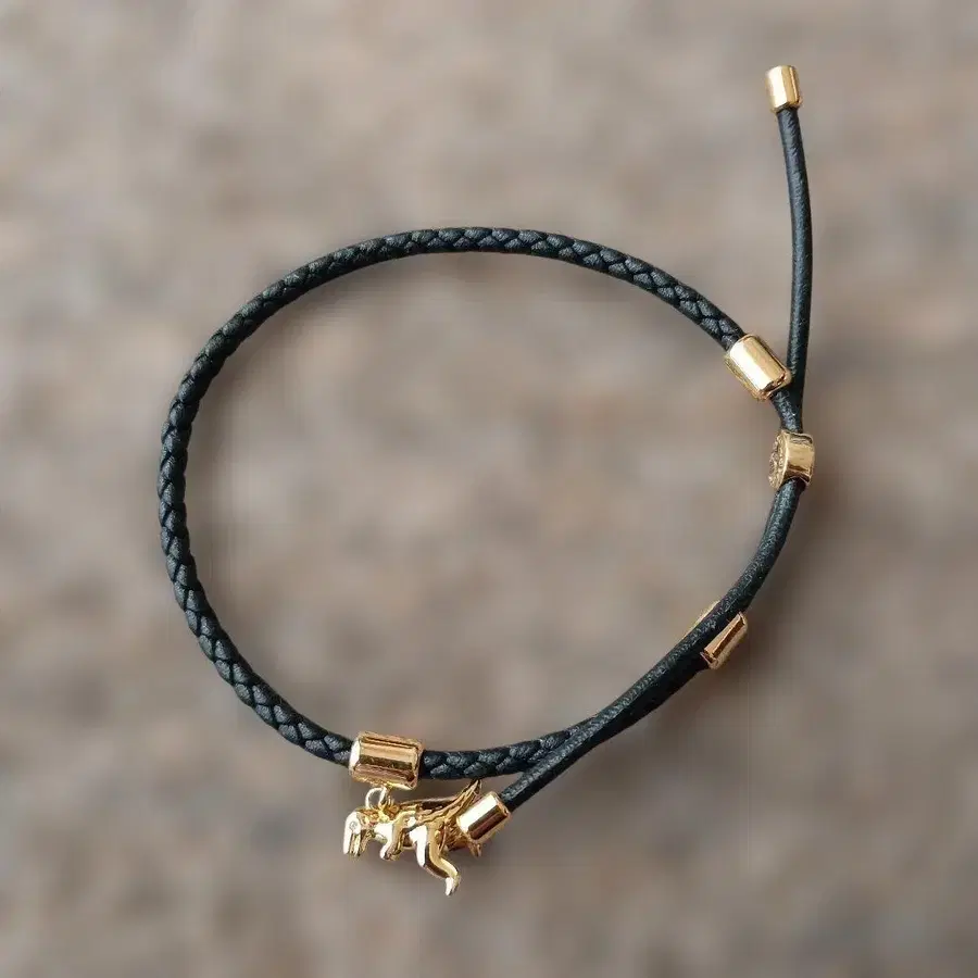 블랙 뜨개질 가죽 팔찌 골드 참 포함