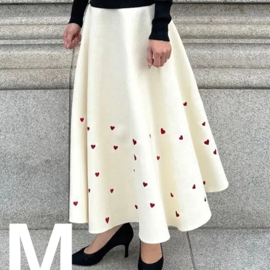 밑단 부분에 하트 자수를 랜덤하게 흩뿌렸습니다.