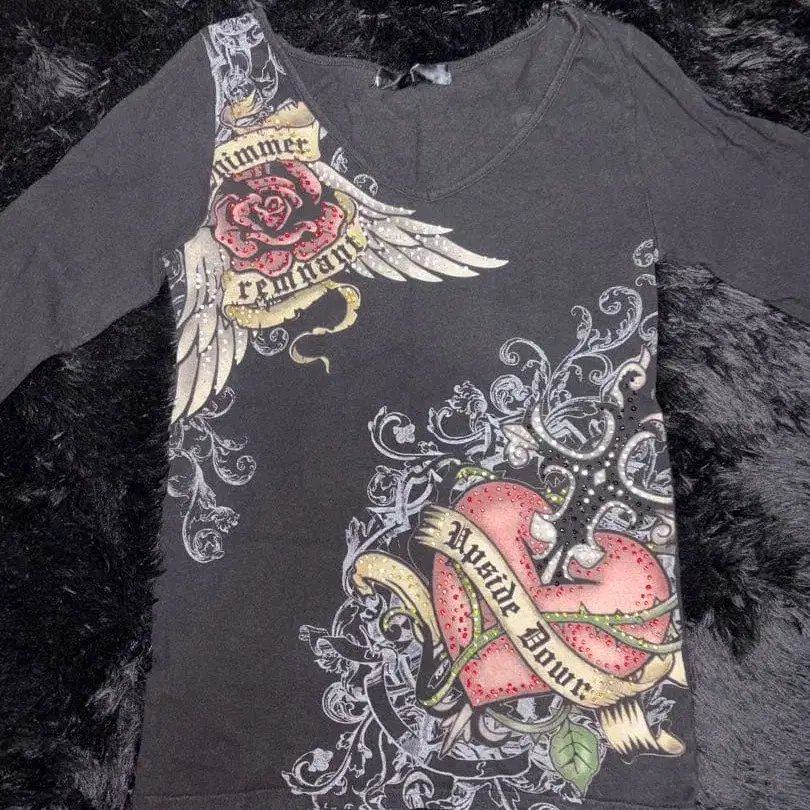 헤이세이 갸루 긴팔 상의 롱 T 큐빅 장미 y2k
