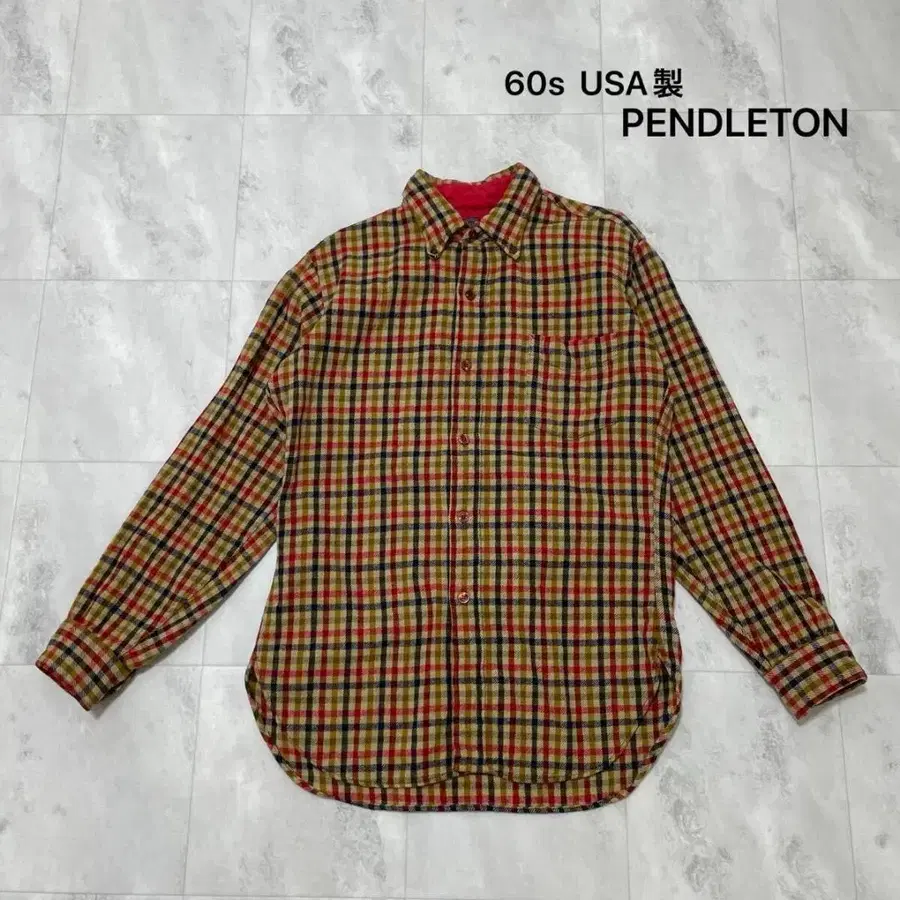 60s 미국제 PENDLETON 펜들턴 울 셔츠 버튼 다운 셔츠 BD 긴팔 셔츠 체크 셔츠 60년대 빈티지 미국제 아메카지 황토색 사이즈 M玉na1569