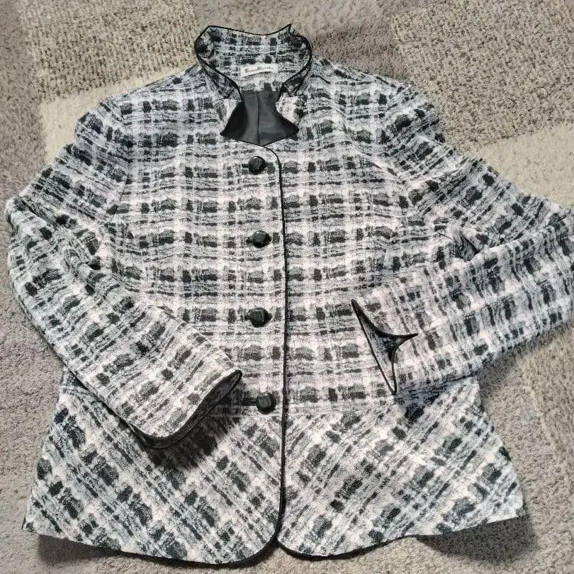 입학식 졸업식 포멀 그레이 계열 체크 스탠드 카라 자켓