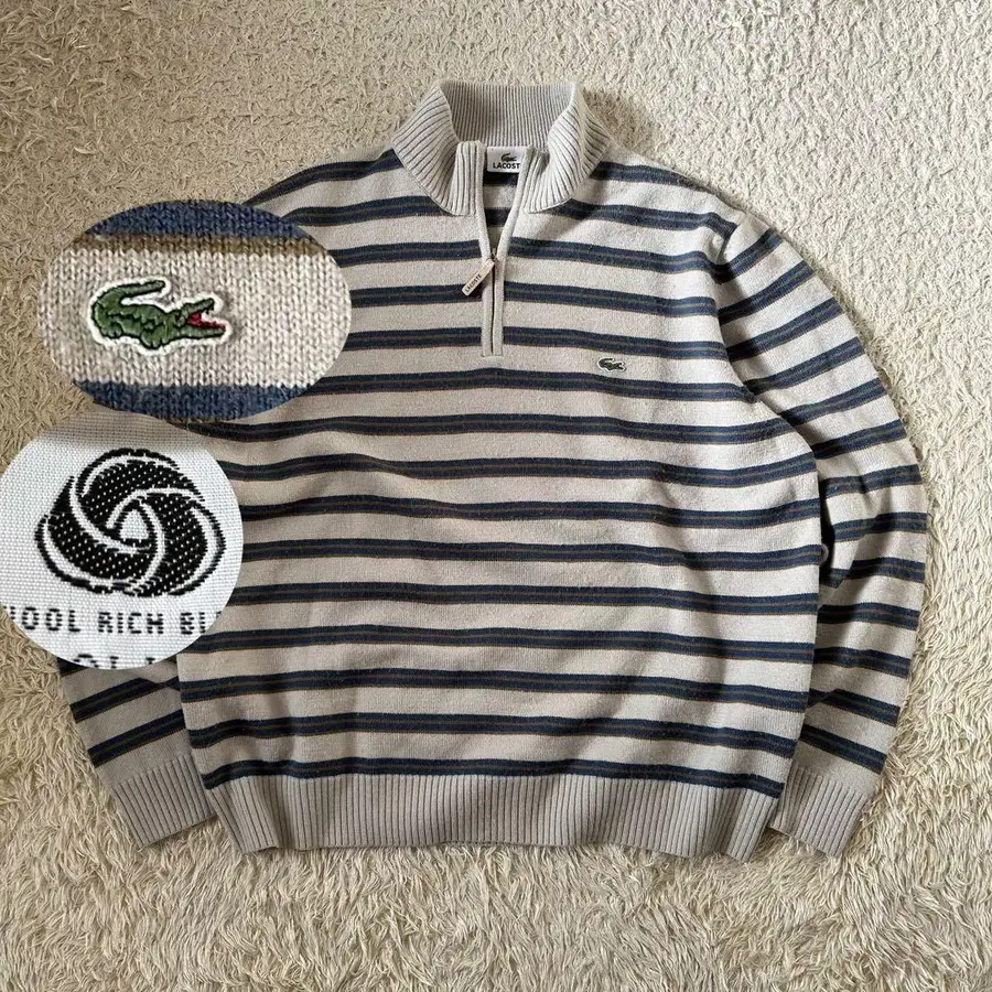 빅 사이즈 라코스테 하프 지퍼 니트 멀티 보더 원 포인트 악어