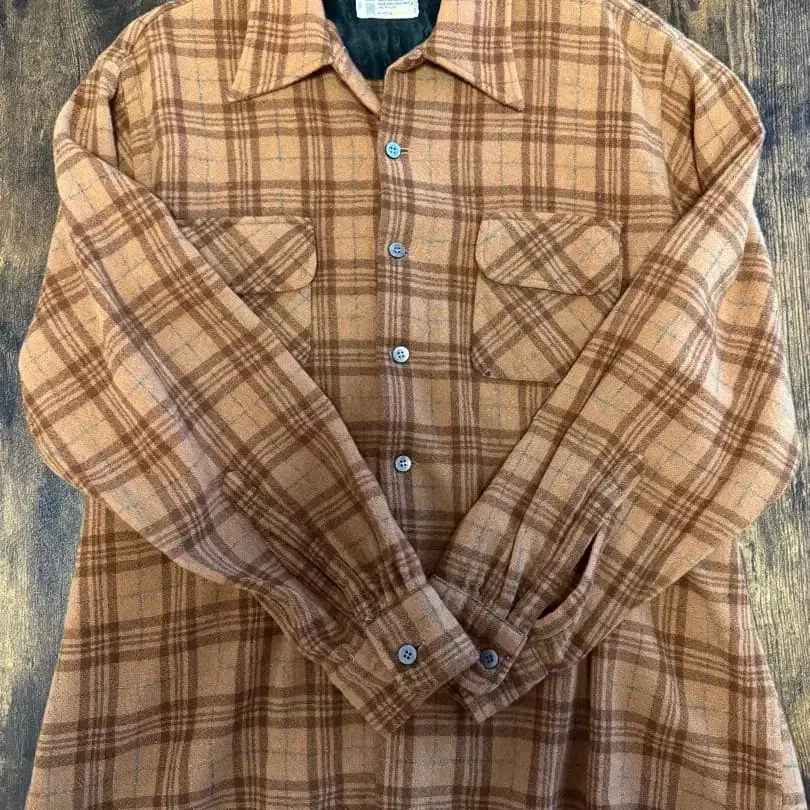 TOWNCRAFT 울 셔츠 브라운 계열 오픈 카라 셔츠