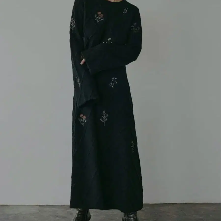꽃무늬 자수가 놓인 니트 원피스. 입체적인 격자 니트 직물에 꽃무늬 자수를 놓은 디자인이 포인트. 플레어 소매로 여성스러움을 더했습니다. 피부에 닿는 감촉이 좋은 소재로, 까끌거리지 않는 것도 ◎ 적당히 두께감이 있어 따뜻하게 착용 가능. 체형을 드러내지 않아 다양한 분들이 즐기실 수 있습니다.