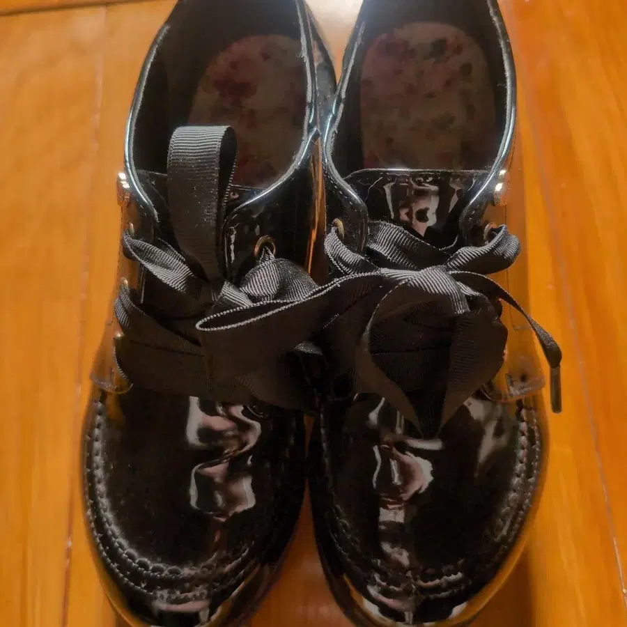 에나멜 소재의 블랙 로퍼, 하트 장식과 리본 포함. - 색상: 블랙 - 소재: 에나멜 - 디자인: 하트 장식 포함 - 굽 높이: 중간 굽 - 리본: 블랙 리본 방문해 주셔서 감사합니다. 10회 이하 착용했습니다.