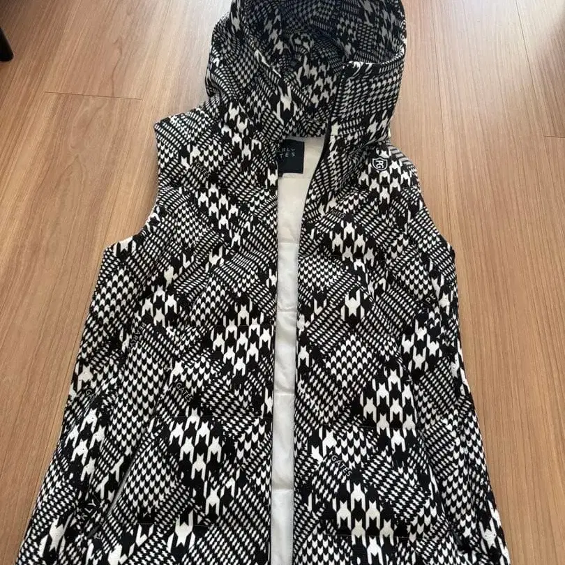 기하학 패턴 후드 부착 슬리브리스 베스트