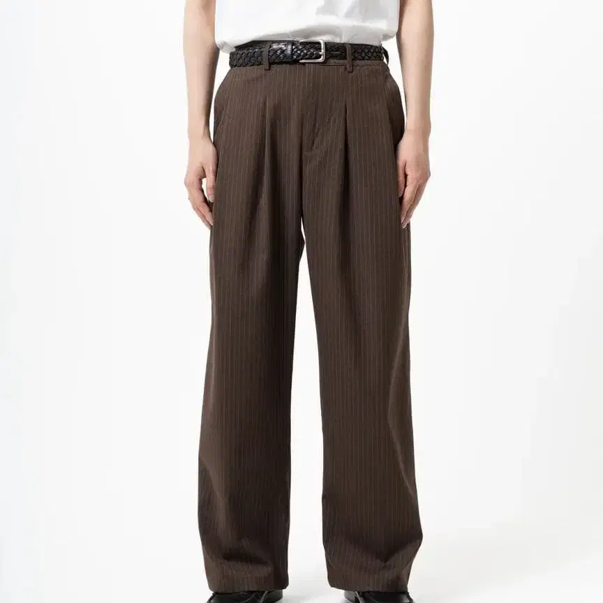 • WETTEMPT 투 턱 이지 스트라이프 슬랙스 브라운 M