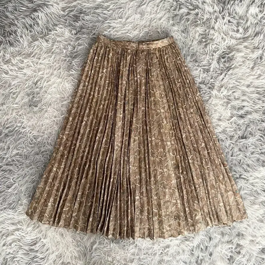플리츠 스커트 롱 미디 A라인 플레어 올 패턴 안감 포함 브라운(M)