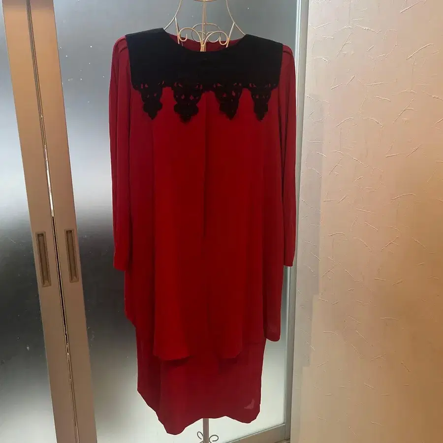 일본제 Evekact M~L 레이스 장식 보트넥 빨간색 드레스