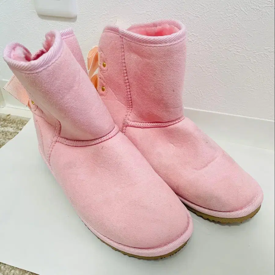 핑크 리본 포함 어그 부츠 L 사이즈