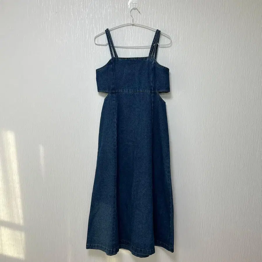 폴쿠시 데님 롱 원피스 어깨끈 조정 가능