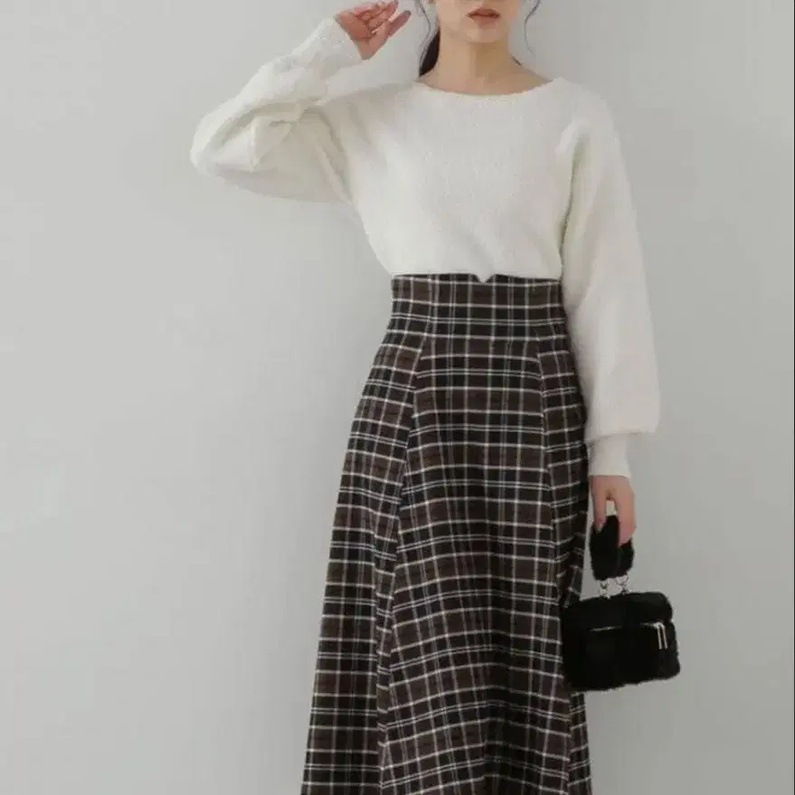 체크 플레어 롱 스커트