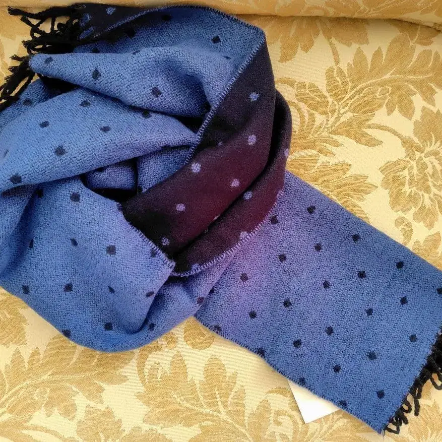 새상품 이탈리아제 도트 무늬 머플러 네이비 블루