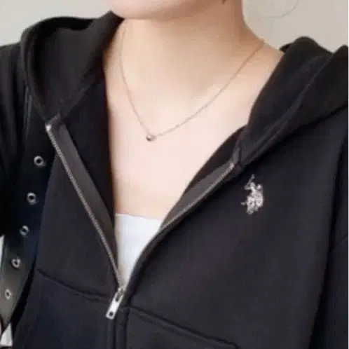 U.S. POLO ASSN. 원포인트 자수 더블 지퍼 숏 후드티 블랙 L