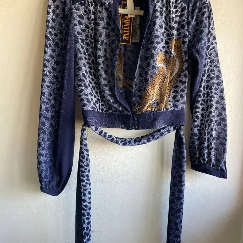 빈티지 70s 레오파드 무늬 크롭 셔츠 블라우스 택 포함 새상품