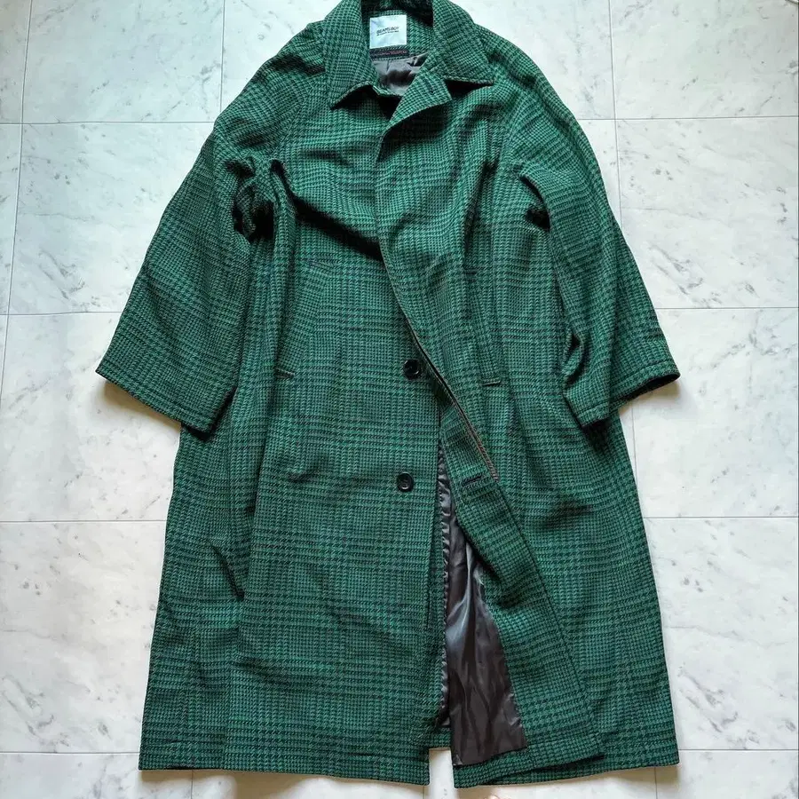 BEAMS BOY 솔로텍스 풀프란 스텐카라 코트 하운드투스 체크 그린
