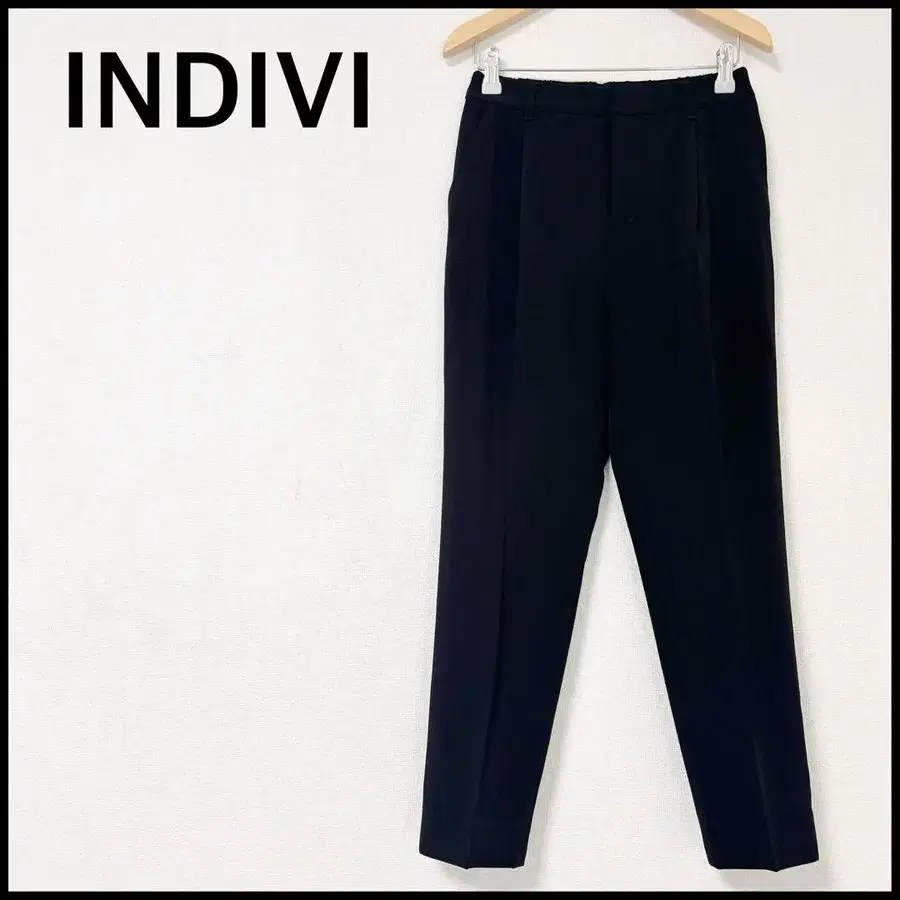 [거의 미사용] 인디비 테이퍼드 팬츠 센터 프레스 블랙 S