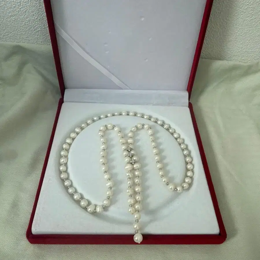 화이트 펄 롱 목걸이 케이스 포함