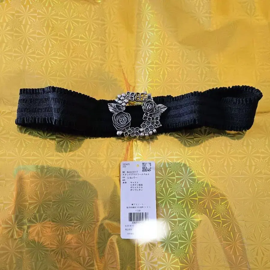 미사용 새상품 엑시즈팜 블랙 장미 장식 스트레치 벨트