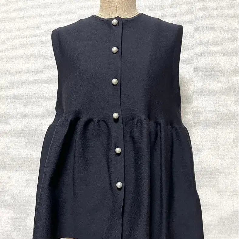 UNFILO 슬리브리스 플레어 베스트 네이비