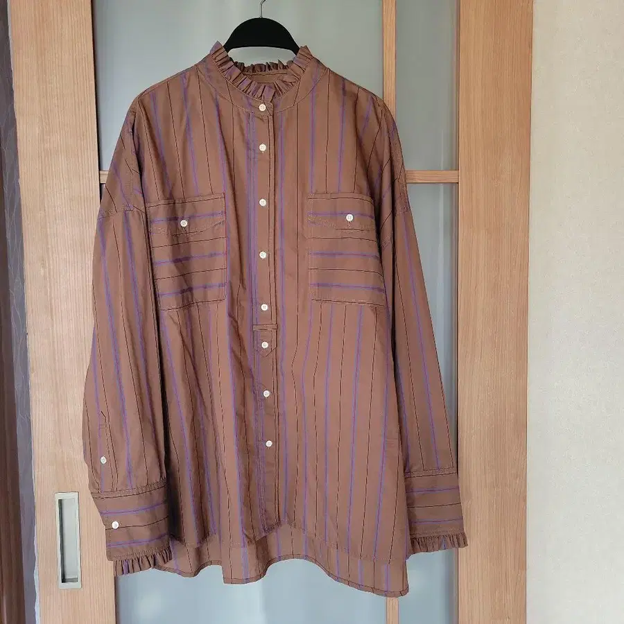 프릴 옷깃 브라운 스트라이프 셔츠 (새상품)