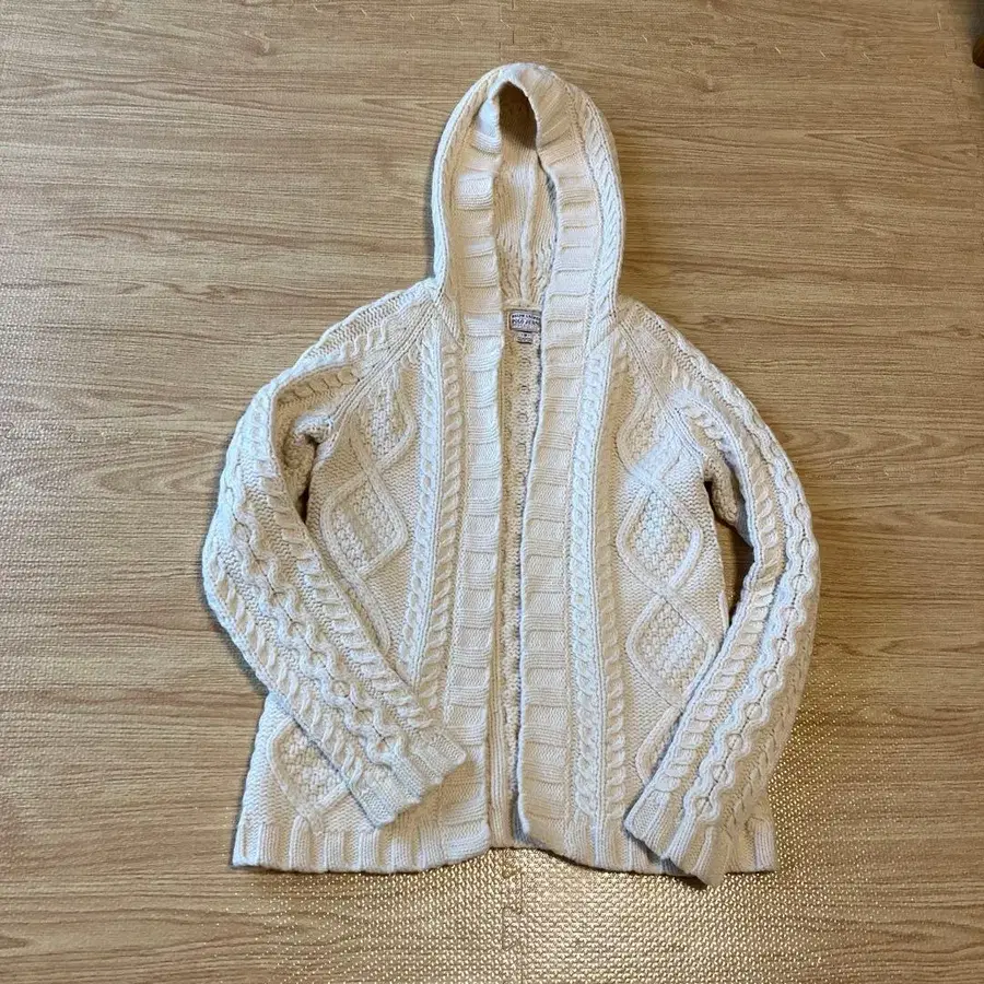랄프 로렌 폴로 아이보리 후드 부착 케이블 짜임 가디건
