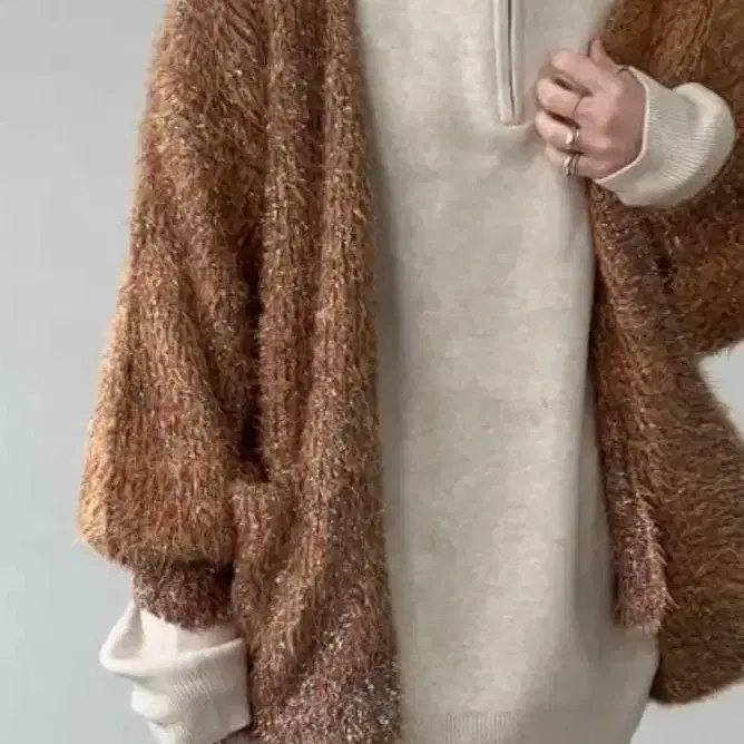 • 저니 서울[F] 고급 내추럴 보송보송 샤기 니트 가디건