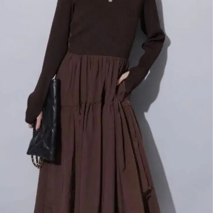 아르페쥬 스토리 타프타 도킹 원피스 브라운